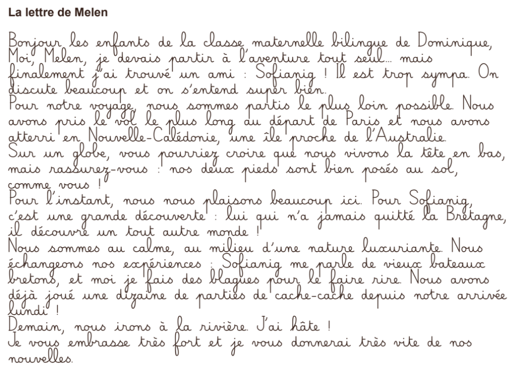 Dans le cadre du projet « Tour du monde » des peluches de la classe sont parties à l’aventure Bleizig à Djibouti et Melen à Nouméa.
